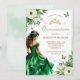 Green Floral Dress Butterfly Quinceañera Invitation