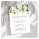 Funeral remembrance invitation featuring a nature, floral, watercolor invite celebration of life template that is easy to personalize. Elegant, white and greenery flowers botanical design with gray text.