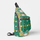 Green floral pattern groovy retro boho Crossbody Sling Bag
