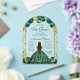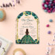 Green Floral Princess Gold Arch Quinceanera Acrylic Invitations