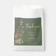 Green Floral Wedding Favour Bag. Elegant and romantic, this beautiful colour palette of tan, brown, rust, terracotta, and burnt orange is the trending theme for this year's weddings. Rustic dried grass, beautiful flowers, and vintage wildflowers are stunning details for your modern boho-chic wedding.