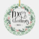 Elegant Christmas themed double sided floral green ceramic ornament with green and red foliage wrath and Christmas typography in the middle, it also has editable text at the bottom. The text is editable on both sides at the same time, click "personalise this template" and change the year or write what you wish to be at the bottom. This Christmas ceramic ornament is suitable as a keepsake, housewarming gift, or just as a home living decor.