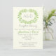Spring green foliage frame with initials wedding couples shower invitation featuring a green wreath frame made of leaves with initials or monogram and text in grey. This modern stylish and elegant, monogrammed template is a totally customisable design part of a wedding set perfect for your spring or summer wedding.