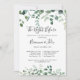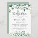 This green foliage night before rehearsal dinner invitation is perfect for a modern event. The design features watercolor hand-drawn elegant botanical eucalyptus branches and leaves, arranged in beautiful bouquets and geometric patterns.