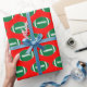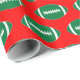 Green Footballs on Red Background Christmas Gift Wrapping Paper