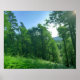 Forest Landscape Photography. Peaceful green landscape of the forest in June with green vegetation, green trees and morning sunlight.