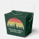 Cool forest sunset party favour boxes in green for the whole group on a nature outing or camping trip family reunion. This custom party favour box features a beautiful vintage sunset over a forest of pretty trees above your personalised text.