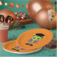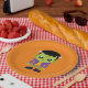 Paper plates with a fun Halloween image featuring a green Frankenstein monster.