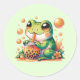 Green Frog Drinking Orange Boba Classic Round Sticker