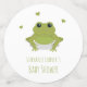 Baby Shower confetti showing a smiling, green, frog with green hearts, white hearts on a green background, and more. The words are customisable. This item is part of a baby shower set that includes an invitation, party supplies, and more. Customise these items, add them to your cart, and have a wonderful baby shower.