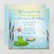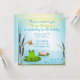 Pond illustration with a frog on a lily pad looking up at the overhead butterfly. I think he's hungry. A second lily pad with a pink lily is floating behind the frog. Cattail plants edge both sides of the invitation. Customise the card with your party's information, choose your own font style, size, and colour. Use the back of the invitation for more information if needed.
