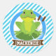 Green Frog on Lilypad; Blue & White Stripes Classic Round Sticker