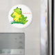 A large round magnet with a cute green frog going, 'gribbet, gribbet...'; from a watercolour illustration by Judy Adamson. This design also fits keychains, buttons and stickers.