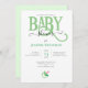 Adorable GREEN BABY SHOWER invitation featuring green BABY typography and little pacifier. Gender neutral.