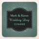 Green Geometric Pattern Custom Text Wedding Square Paper Coaster