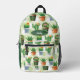 Green Gingham Cactus Pattern Printed Backpack
