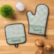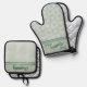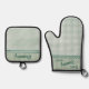 Green Gingham Check and Stripes Personalised Oven Mitt & Pot Holder Set