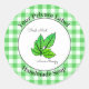 Green gingham and a cute illustration of mint leaves with text templates in a classy font pairing for you to customise with your own private label details.
