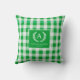 Elegant & Rustic Green Gingham Monogram Crest Throw Pillow.