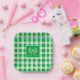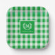 Custom Monogram Paper Plates Green Gingham Pattern Design - 6 colours.