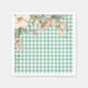 This Green Gingham napkins coordinate with the Anne of Green Gables collection and features a beautiful wildflower arrangement in the corner The background is light green gingham. Other colours include cream, orange, peach, pale pink and white.