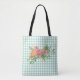Green Gingham with Peony Flowers Tote Bag