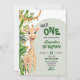 Green Giraffe Wild One Safari First Birthday Invitation