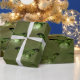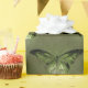 Grungy damask pattern favour box in accents of green and black with a shining butterfly.