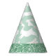 Adorable bunny rabbits green glitter trim party hat. So cute for baby boy or girl party.