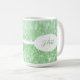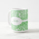 Enjoy your morning coffee with a Green Glitter Personalise Coffee Mug. Coffee mug design features a green glitter background and oval banner you can add your name and monogram. Additional gift items available with this design as well. Please contact me directly if you need assistance with personalisation. Please note, item contains art rendering of glitter and will not contain actual glitter when shipped.