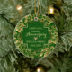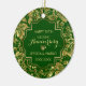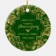Elegant gold tones floral damasks over the green custom background. Green and gold vintage frame customisable 50th wedding anniversary Christmas ornaments customisable template.