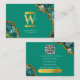 Green Gold Agate Geode Glitter Monogram QR Code Business Card