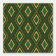 This design has a geometric diamond pattern that features green, yellow-gold, and black with Tribal accents. It will add a touch of sophisticated charm to your abode.