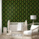 Green Gold And Black Geometric Tribal Style Print Wallpaper