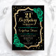 Green Gold Black Feminine 21st Birthday Invitation