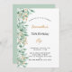 Green gold botanical greenery white birthday invitation
