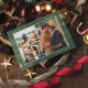 Hunter green and gold botanical leaf design holiday cards featuring three of your favorite photos from the year. Customize with photos, your holiday greeting and names. Reverses to coordinating rust botanical design on the backside of card.
