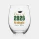 Green Gold Class of 2026 Graduation Party Stemless Wine Glass