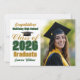 Customize your own green and gold high school Class of 2026 graduate photo announcement card for a high school or college graduation. Cool varsity letters for the year on great custom cards for seniors. Classic typography next to your student photograph.