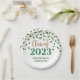 Customisable graduation party class of 2023 plates in glamourous gold and green confetti pattern and elegant hand lettered style text.