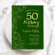 Green Gold Floral 50th Birthday Party Invitation. Minimalist modern design featuring botanical outline drawings accents, faux gold foil and typography script font. Simple trendy invite card perfect for a stylish female bday celebration. Can be customised to any age. Printed Zazzle invitations or instant download digital printable template.