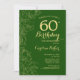 Green Gold Floral 60th Birthday Party Invitation. Minimalist modern design featuring botanical outline drawings accents, faux gold foil and typography script font. Simple trendy invite card perfect for a stylish female bday celebration. Can be customised to any age. Printed Zazzle invitations or instant download digital printable template.