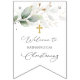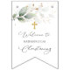 This design features an illustration of green and gold foliage in watercolor style. Above the leaves - confetti adorns the top of the banner (their images can be removed). Below the green foliage there is an image of a Cross. Texts "Welcome to" and "Christening" are written in calligraphy style..
