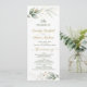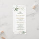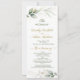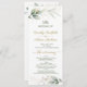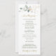 Elegant Wedding Program card with green and golden foliage in watercolor style and golden effect confetti.