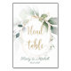 Greenery Wedding Head Table - a watercolor illustration of green and gold leaves in an oval shaped border. On the reverse side - your personal photo!