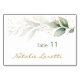 Elegant flat place card featuring an illustration of green and gold foliage in watercolor style. On the top of the card - gold effect confetti. You can change the table number to your requirements (2, 5...7...10...) - each time a new card, and add all these cards to your cart.
