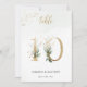Beautiful table number card with a botanical motif - a watercolor illustration of green and gold leaves. Table 10. Please, check all available numbers in this collection.