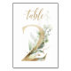Beautiful table number card with a botanical motif - a watercolor illustration of green and gold leaves. Table 2. Please, check all available numbers