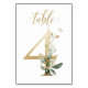 Beautiful table number card with a botanical motif - a watercolor illustration of green and gold leaves. Table 4. Please, check all available numbers