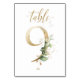 Beautiful table number card with a botanical motif - a watercolor illustration of green and gold leaves. Table 9. Please, check all available numbers